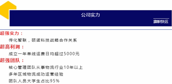 河南旗幟物流有限公司是一家從事道路運(yùn)輸、貨物配送及貨款代收的綜合型物流企業(yè),公司秉承“同擔(dān)共榮、同贏共生”的創(chuàng)業(yè)理念,牢記“快,讓生活更方便”的企業(yè)使命,不斷加強(qiáng)團(tuán)隊(duì)建設(shè),通過物流團(tuán)隊(duì)、先進(jìn)的信息技術(shù)、簡化物流環(huán)節(jié)、降低物流成本,滿足客戶多元化的需求,為客戶提供便捷的物流服務(wù),為社會創(chuàng)造效益。