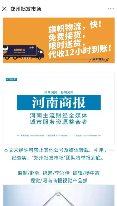 據(jù)分析,在此次合作中,旗幟快運正因為有著深厚的基礎(chǔ)條件,才為此次合作取得又一步的推進,一個活廣告可不是那么好做的,不僅要邁進來,更要走出去。這也是河南商報的所看到的旗幟快運不一樣的地方。